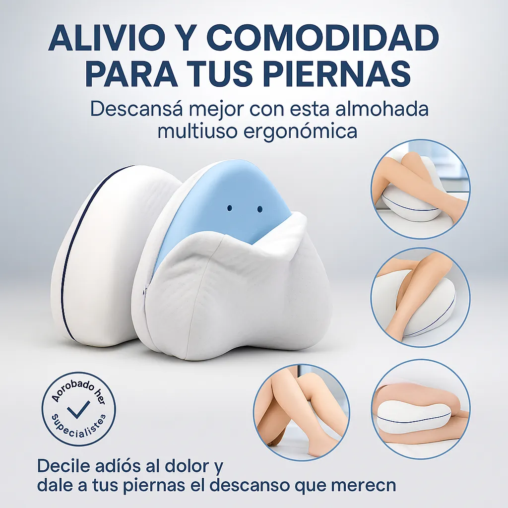-Diseño anatómico ergonómico: se adapta perfectamente entre las piernas al dormir de lado, manteniendo caderas y columna alineadas.