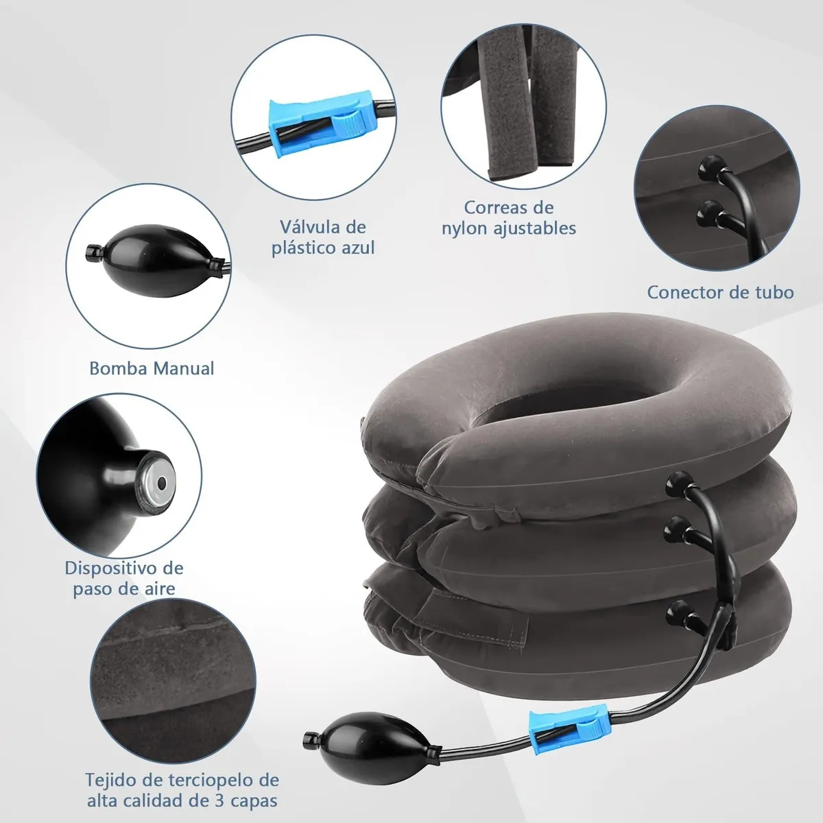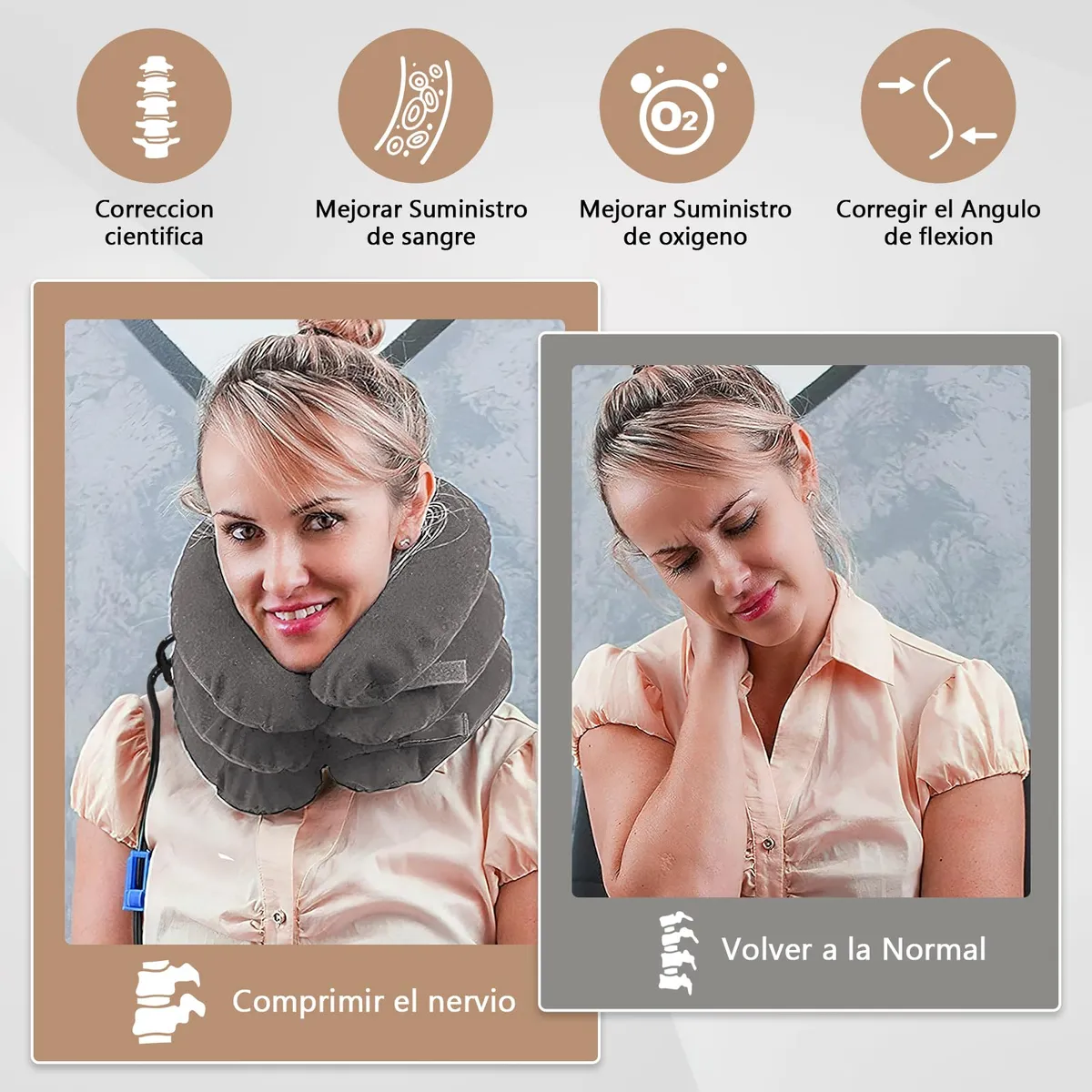 🧘♀️ Tracción suave y progresiva que ayuda a descomprimir las vértebras cervicales, aliviando el dolor, la tensión muscular y mejorando la postura.