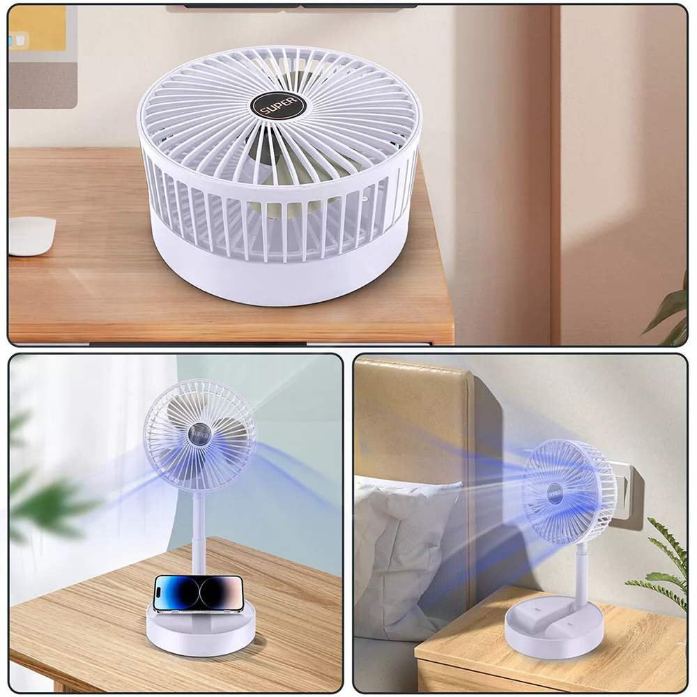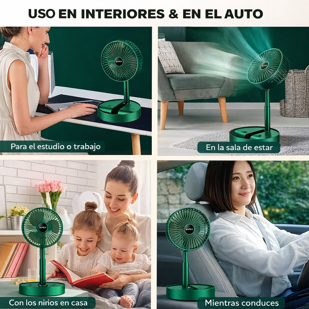 Este ventilador plegable es una solución práctica y versátil para mantenerse fresco, con la comodidad adicional de su soporte para celular y su diseño extensible.